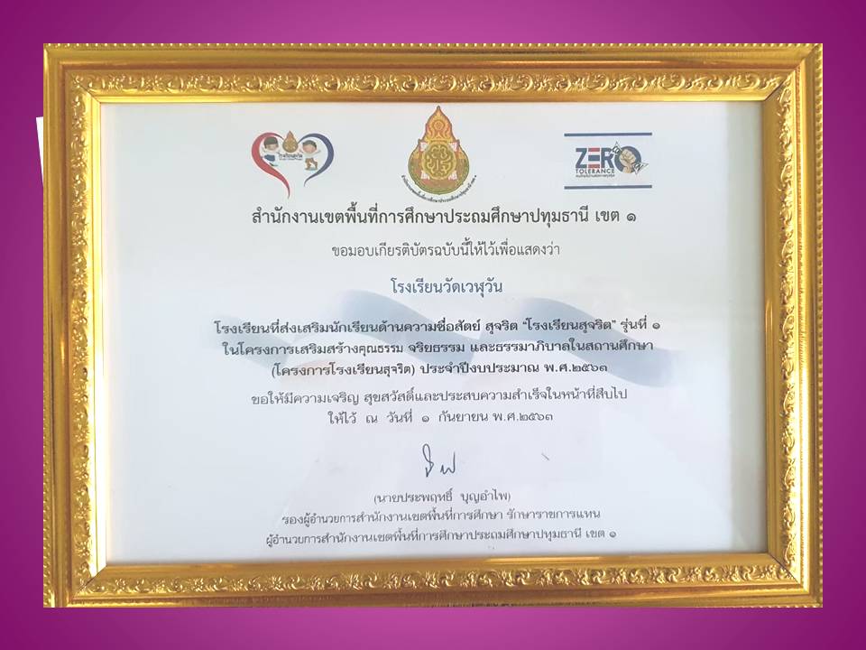 รางวัลและผลงานของโรงเรียน (นักเรียนสุจริต)