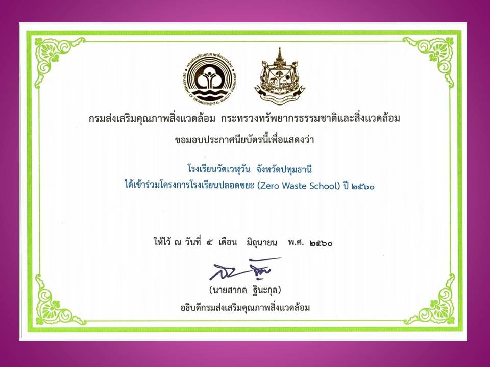 รางวัลและผลงานของโรงเรียน (เข้าร่วมโรงเรียนปลอดขยะ)