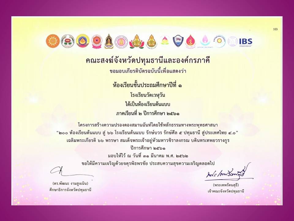 รางวัลและผลงานของโรงเรียน (ห้องเรียนต้นแบบ ป.1 )