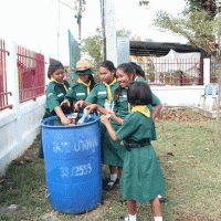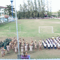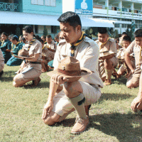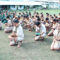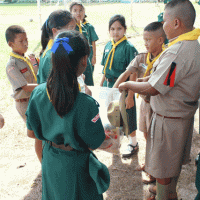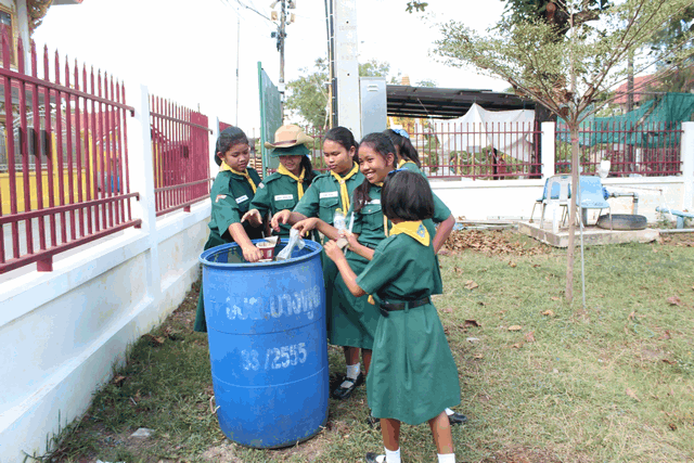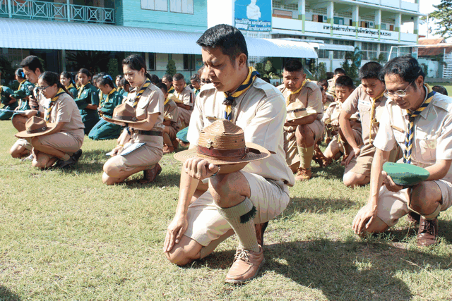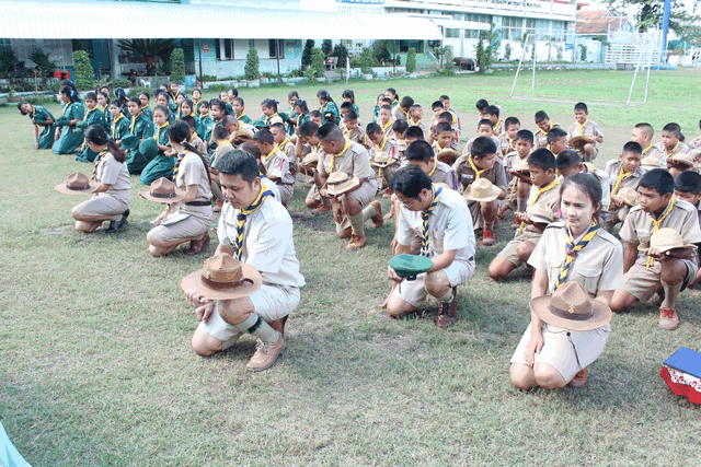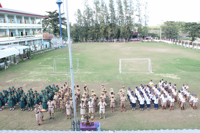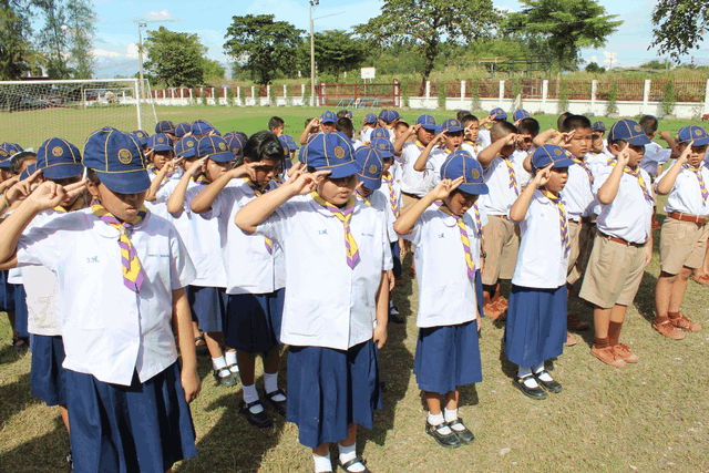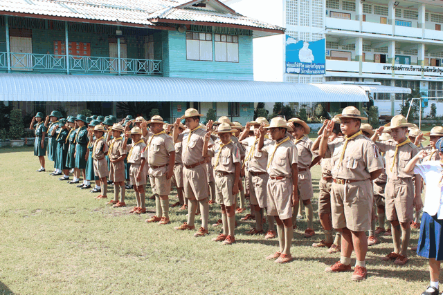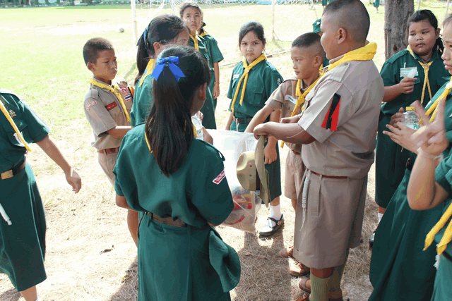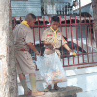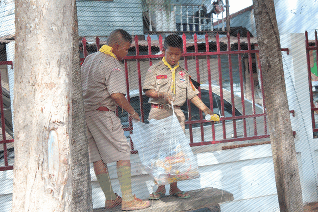ลูกเสือ เนตรนารีปฏิบัติกิจกรรมบำเพ็ญประโยชน์ เก็บขยะ ภายในและภายนอก