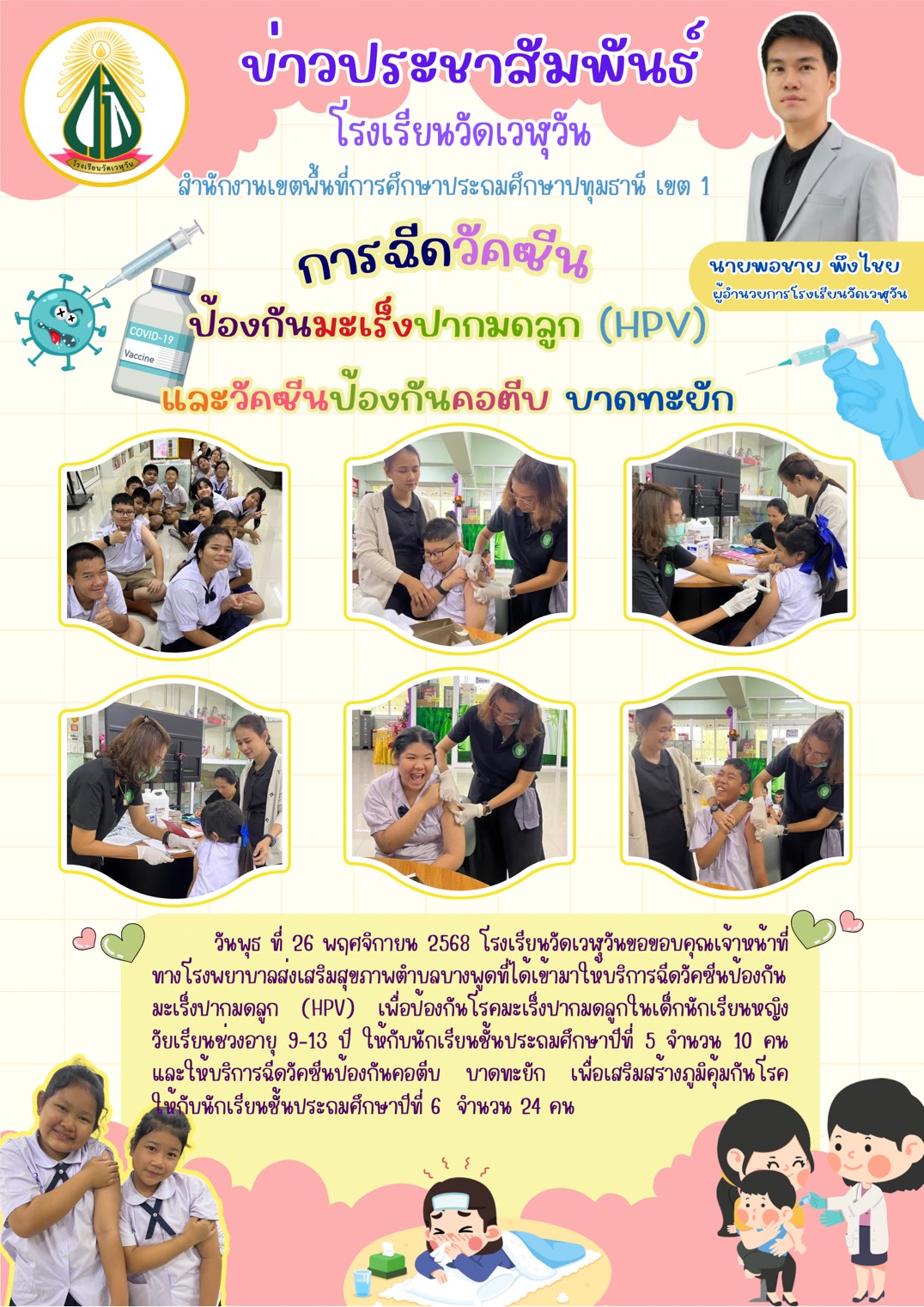 ฉีดวัคซีนป้องกันโรคคอตีบ–บาดทะยัก และ วัคซีนป้องกันมะเร็งปากมดลูก HPV