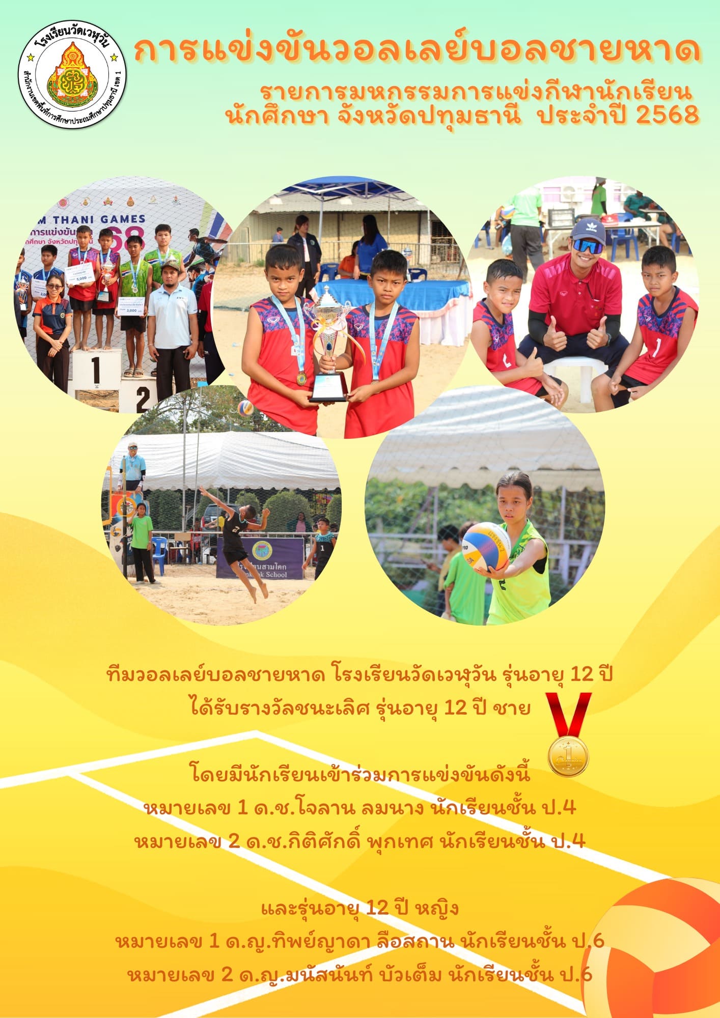 มหกรรมกีฬานักเรียนนักศึกษาจังหวัดปทุมธานี ประจำปี 2568 กีฬาวอลเลย์บอลชายหาด